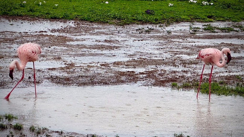 There was plenty of water in the crater while we were there. Flamingos a highlight.