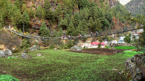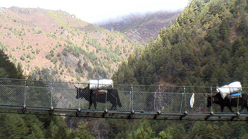 This section of the trail is crowded and dusty. Best not cross a bridge if you see pack animals coming from the other direction.