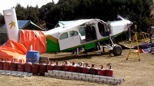 Surprisingly, a plane flew in to the Shyangboche airstrip. It unloaded everything, even the wings.