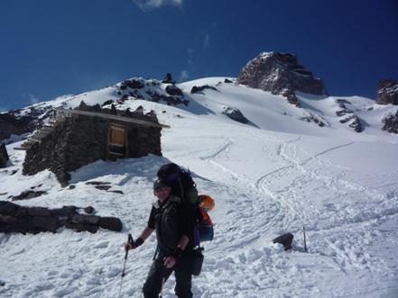 My Rab shell and new Rab down jacket were AMAZING on the hike in and at camp, as were my Merrell pants. The Rab down is 800 weight, and yet fits inside its own breast pocket, and weighs perhaps 8 oz (!). Of course the Outdoor Research gaiters/gloves combo worked perfectly as always, and the BD “Serac” crampons were flawless on the snow, the ice and even on the rotten pumice and volcanic rock of the cleaver and Gib rock.