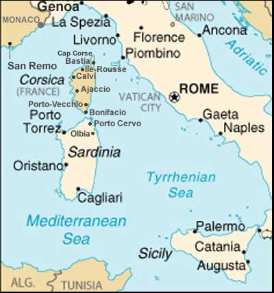 Cinque Terre in northern Italy → CorsicaSardiniaSicily → …