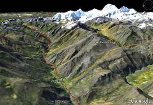 There are some interesting Google Earth routes shown on this site, including this one of the nearby Huayhuash range.