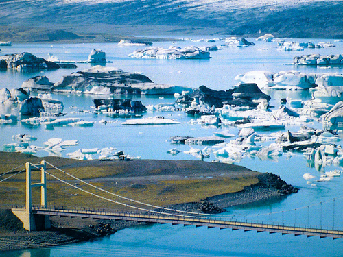 … it evolved into a lagoon after the glacier started receding from the edge of the Atlantic Ocean. The lake has grown since then at varying rates because of melting of the Icelandic glaciers. The lagoon now stands 1.5 kilometres (0.93 mi) away from the ocean’s edge and covers an area of about 18 km2 (6.9 sq mi). …
