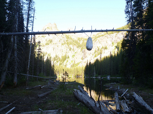 I hung my bear bag almost over the water, lifting it up there with a long branch.