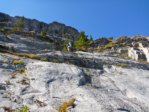 We got immediately lost, having to bushwhack up through trees and scramble to get up on the correct ridge.