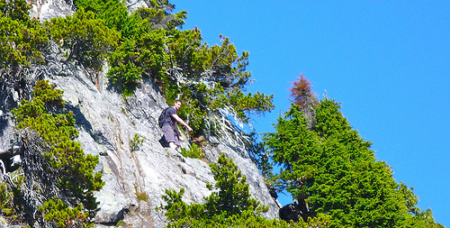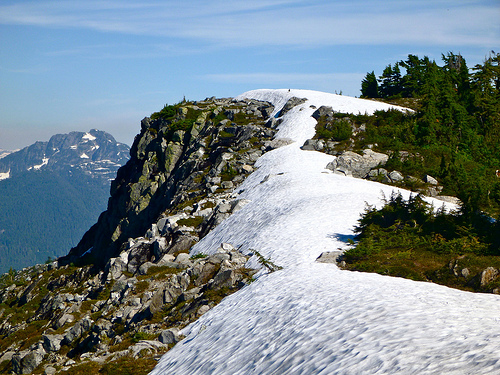 Instead I continued on the Howe Sound Crest Trail between the Lions. This traverse section was the trickiest of all. Considerable exposure.