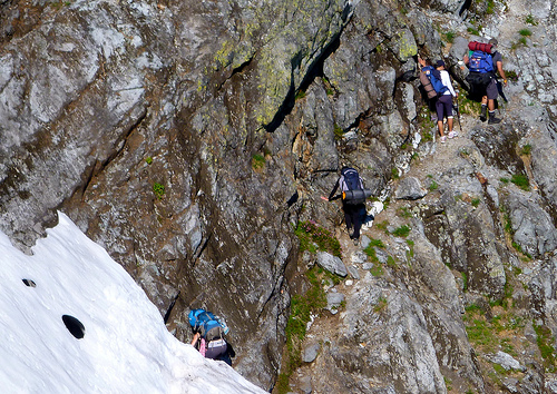 I got fed up myself after one particularly steep, ugly down scramble. And decided to finally set up my tent for the night.