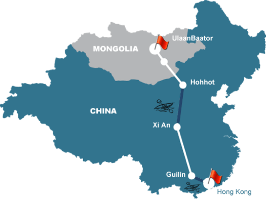 Carrying all of their gear, they will start amidst the wastelands of Outer Mongolia from where they will head south by foot through the Gobi Desert. Crossing into China, they will follow the Great Wall down to the turbulent waters of the Yellow River, where they will inflate the kayaks in order to paddle downstream to the legendary city of Xi An. Leaving the water, they will then hike onwards through the snow-capped mountains of central China, until finally they reach their finishing point at the glittering skyscrapers of Hong Kong.