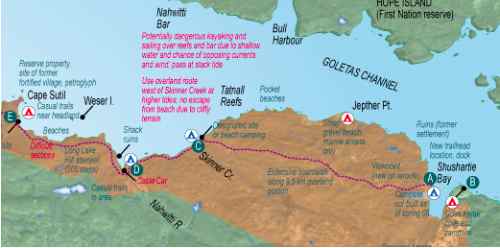 No sea views, a mud slog of 8.7km from Shushartie to Skinner Creek has little to commend itself. Avoid it if you can. It can take 9hrs or more for some groups!