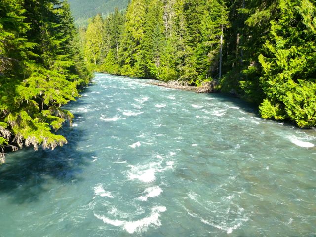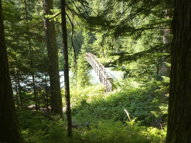 • 1.5 km along the Cheakamus Lake trail, drop down to a bridge across the Cheakamus River.
