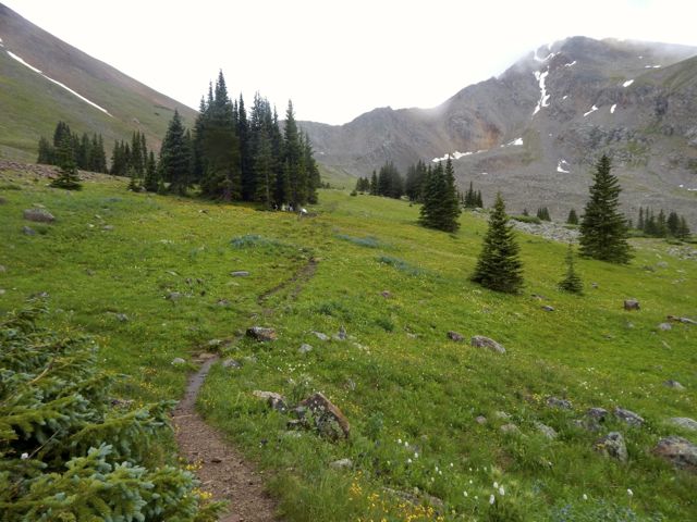 When the rain let up a little, I tried to get up and over Hope Pass as quickly as possible. Lightning is a real danger in the Colorado Rockies. The couple told me to go ahead and that they’d plod along behind. (The tortoise and the hare, I thought.)