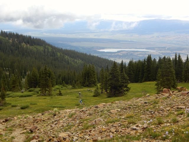 A couple of trail runners paused to chat. They were changing gears from uphill to downhill. This spot is where some of the Leadville Trail 100 mile racers come to grief. It’s 3,400ft of vertical on the front side, descending about 2,600ft.