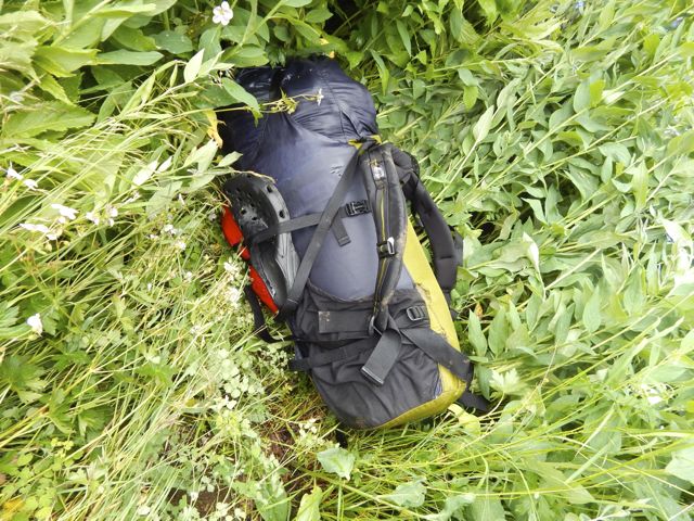 At another stop I carefully set down the pack. Then watched it roll downhill finally coming to rest in the bushes.