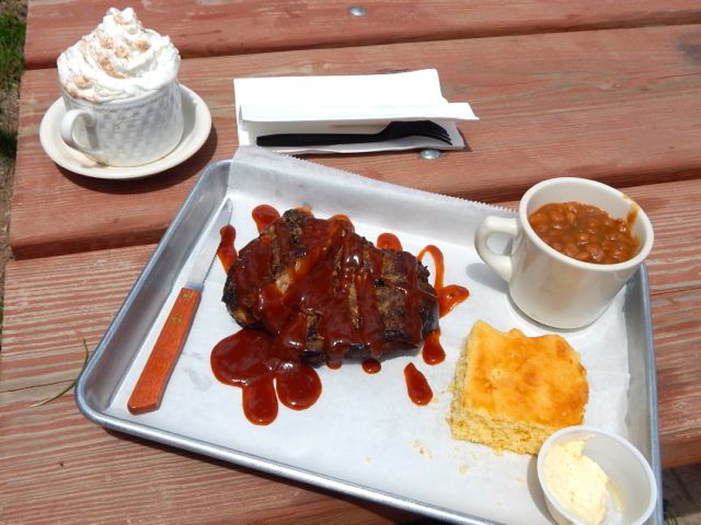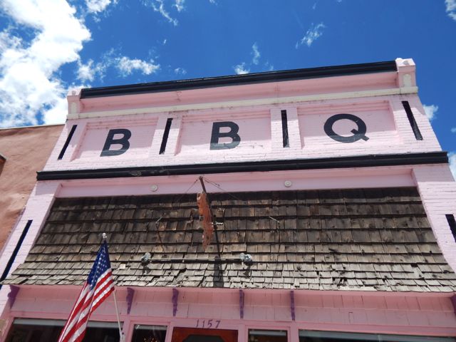 For lunch I hit the southern Barbecue joint – Thee Pits Again.DSCN1933Pork ribs, baked beans, cornbread … and very British bread pudding for desert. My last restaurant meal before hitting the trail.DSCN1936I wandered the town while my togs were drying. DSCN1944DSCN1941 DSCN1943Getting out of Silverton was another blunder. I started hitchhiking … in the wrong direction. A local gent drove me up to the correct highway and to the best place to hitch. I had a ride within minutes. Hikers are hitching back and forth the 7 miles to Molas Pass all the time.