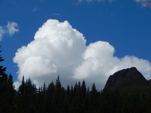 Arriving at the pass I met a European who was nearly finished the 500 mile Colorado Trail. But he needed to resupply in Silverton, staying at the hostel there one night.  Oddly, he got a 7 mile ride with this truck driver. Some scam was in the works, I suspected. DSCN1953 DSCN1954Actually, Silverton has no grocery store. But does have a gear shop (fuel) and plenty of restaurants.
