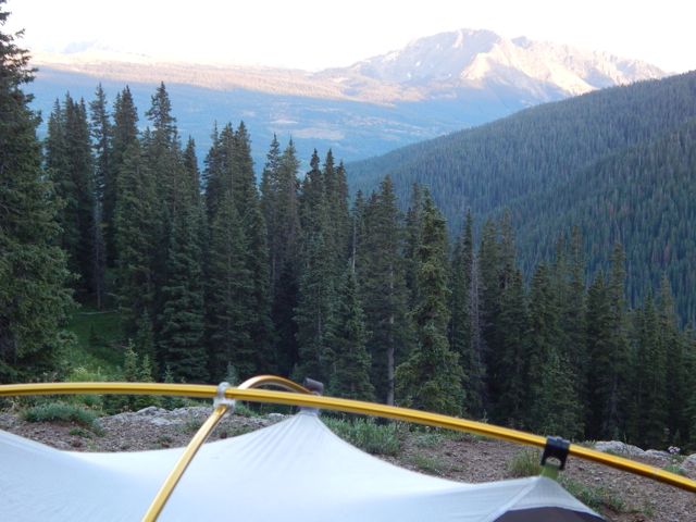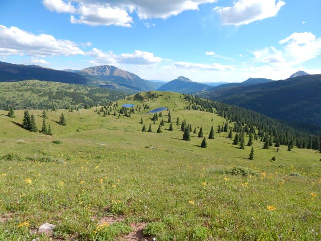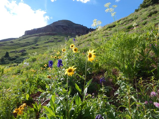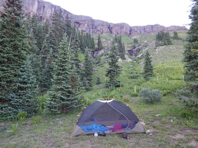 The vista looked great from Molas. Here I’m looking back at the section prior the one I was about to do.DSCN1949  Across the highway. Off and up.DSCN1956Gorgeous scenery. Though my pack felt heavy. I should have left more STUFF hidden in a garbage bag.DSCN1959DSCN1965The wild flowers are shoulder high in places.DSCN1963I set up in a lovely spot.DSCN1968DSCN1970Failed to get the campfire going this time. (Tried to skimp on kindling.)