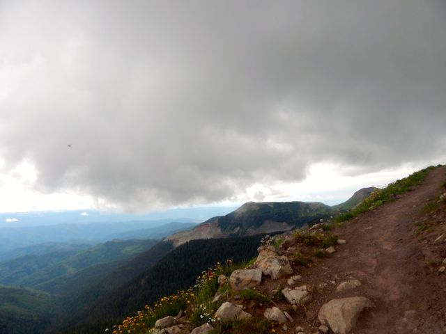 Bad news. I was moving much more slowly than usual … and the big, bad thunder clouds started piling up atop the highest point on the trail.