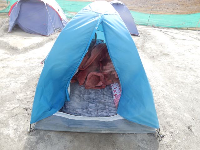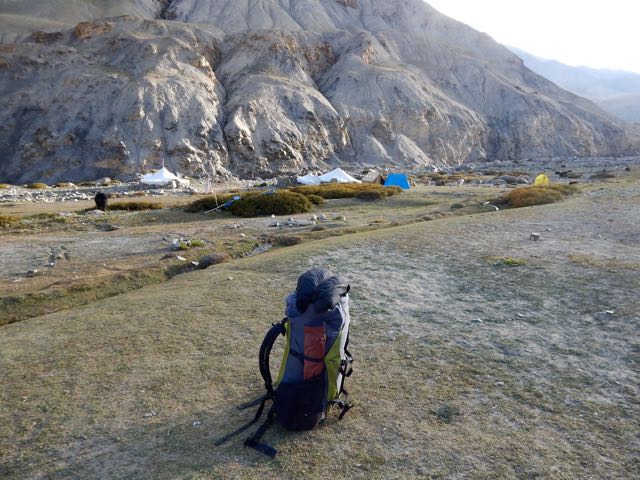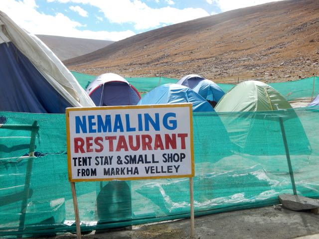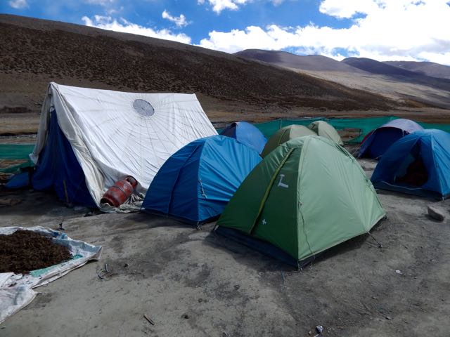 I stopped at the parachute in Nyimaling 4848m. (VERY high!) If you’re smart, you overnight here in these tents giving more time next day to get over.