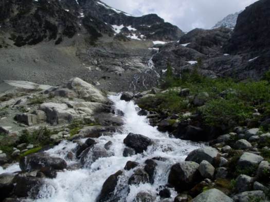 Finally I decided to pack my tent back down to my rent-a-car. Get ready for tomorrow’s hike. (I tented for free on the river from the Wedgemount turn-off, a cyclists hangout.)