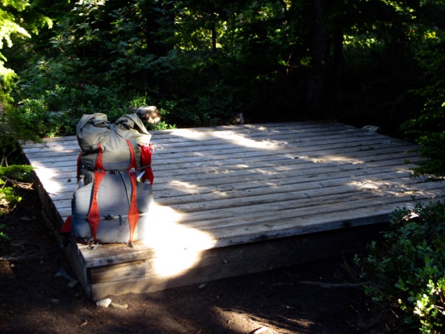 It’s a long easy climb to Taylor Meadows campsite. I had a choice of platform or gravel pad choosing the gravel since it was dry.