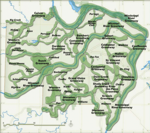 It’s part of the River Ring, a 600+ mile web of parklands and trails being developed by the Great Rivers Greenway. Ideal for cycling, by the looks of it.
