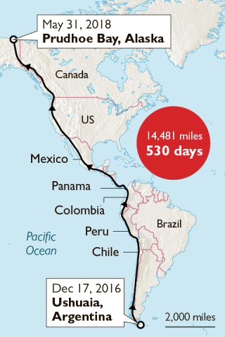 Ayear and a half and 22,530 kilometres after setting off from Ushuaia, in Patagonia, Holly ‘Cargo’ Harrison completed one of the world’s longest trails, walking north to Prudhoe Bay, Alaska in just 530 days.