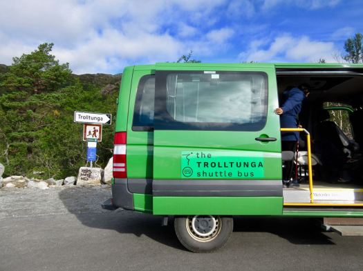 Starting 2017 from the higher parking lot you can take a shuttle up an additional 4km for 100 NOK. Worried about finishing in daylight, I paid.