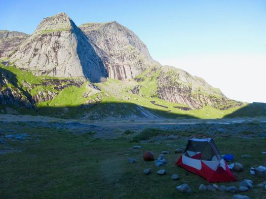 Next morning I was first up and gone. I sat up on the pass enjoying my coffee in the sun while it was still shady down on the beach.