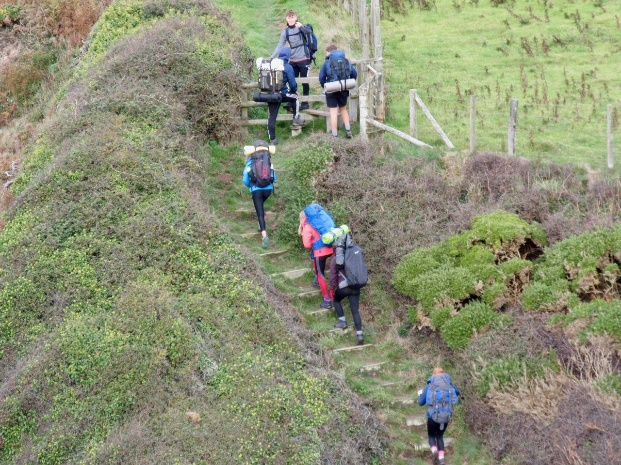 In the parking lot Duke of Edinburgh hikers were unloading. These are students who had to plan and execute an expedition of at least 2 days and 1 night. They looked woefully unprepared to me.