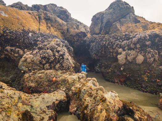 We planned our hikes to coincide with very low morning tides. Thousands of anemones and hundreds of starfish in remote tide pools and hidden sea caves! A highlight was stopping for a break at South Beach and having two whales join us within 100 m of the coastline. The Pacific Rim Traverse is a great introduction to coastal hiking and camping. Prepare for a bigger adventure like the West Coast Trail …