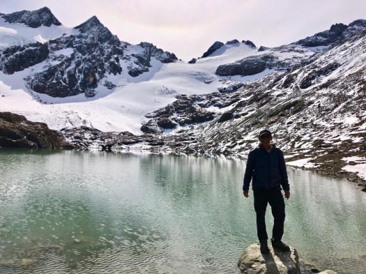 Near the top you reach an alpine meadow. Then a short climb up a waterfall to the Laguna.