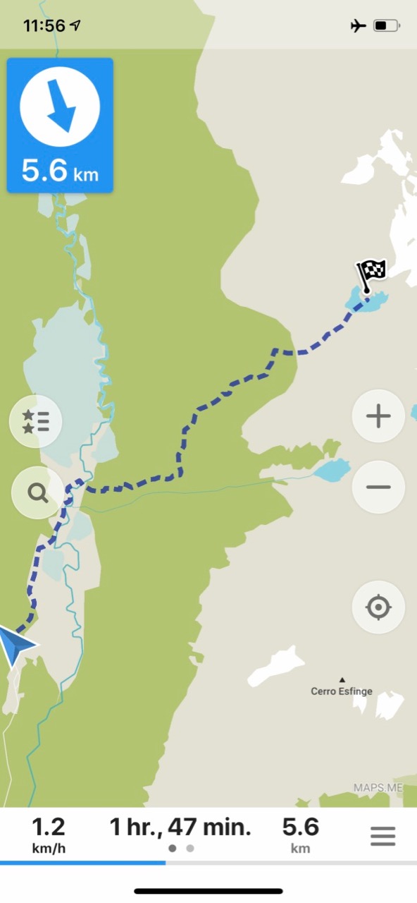 From there it’s only a steep 5.6km up to Laguna de los Tempanos below the glacier. The sign says 6km.