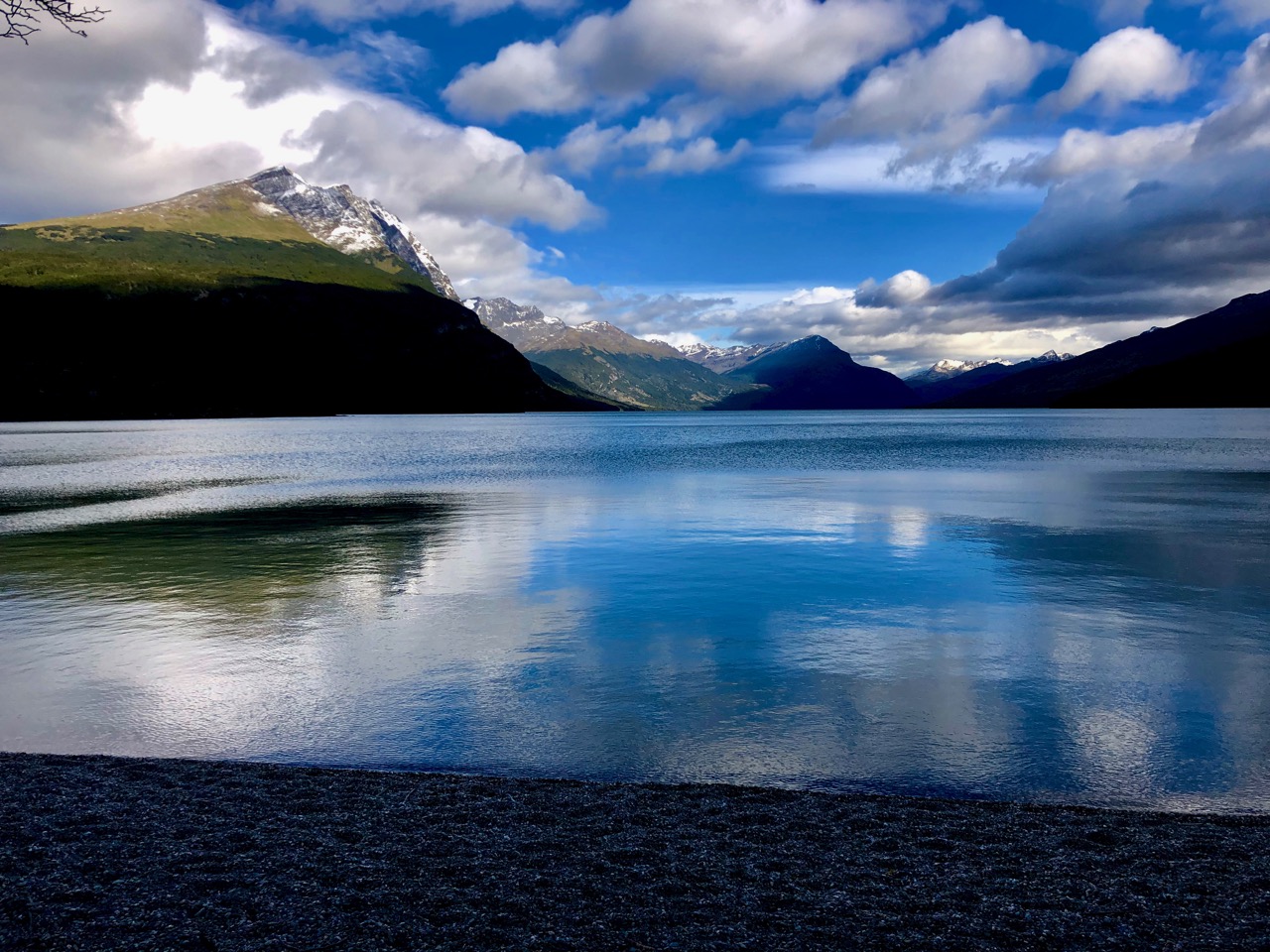 You start along lovely Lake Roca. Perfectly calm the day I was there.
