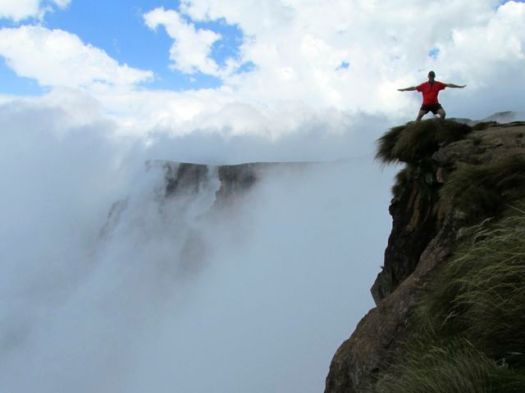 That’s on the Amphitheater trek in the Drakensburgs, South Africa. Sentinel car park is the trailhead.
