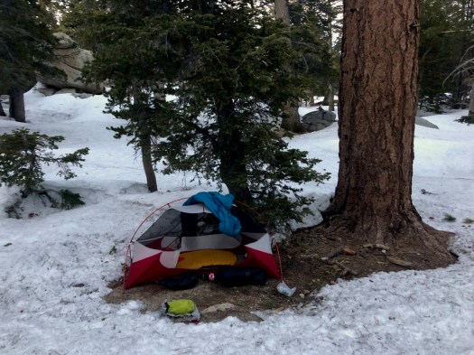 Though I’d not seen any animal tracks aside from squirrel, I put my smellies in an Ursack. Bears are hungry in the Spring.