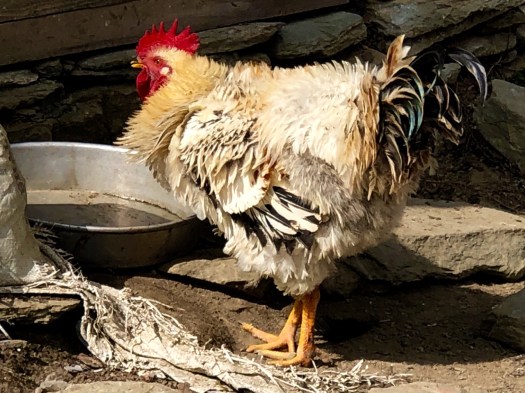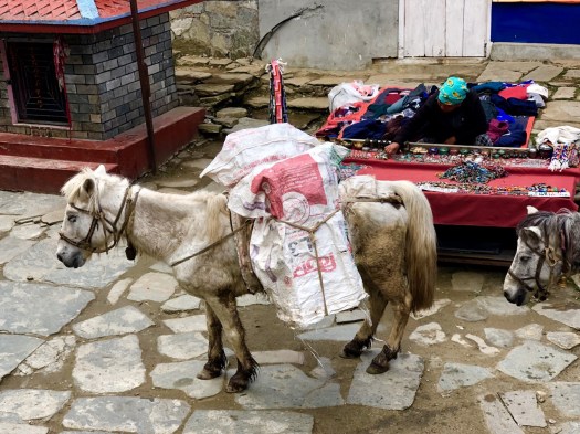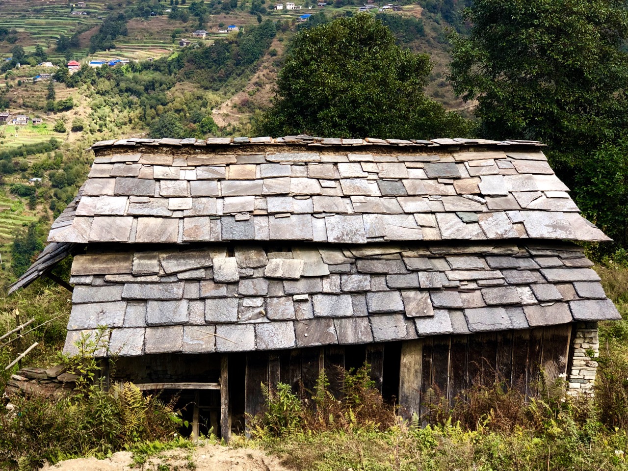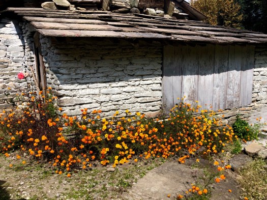 Up to Ghorepani the buildings all had blue corrugated iron roofs. Here they have more stone houses, many retaining traditional rock-slab shingles.