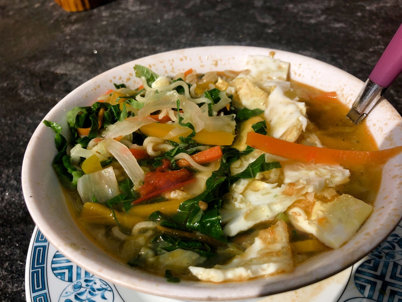 Egg noodle soup is my regular lunch feed.