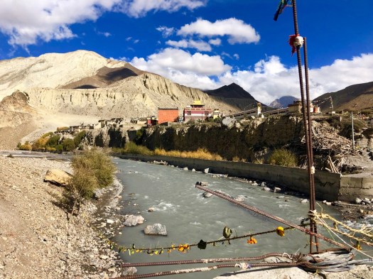 One place in Upper Mustang you ARE allowed to visit without a restricted-area is Tiri village. To get there you cross a bridge over the Kali Gandaki and hike about 45min on the west bank of the valley.
