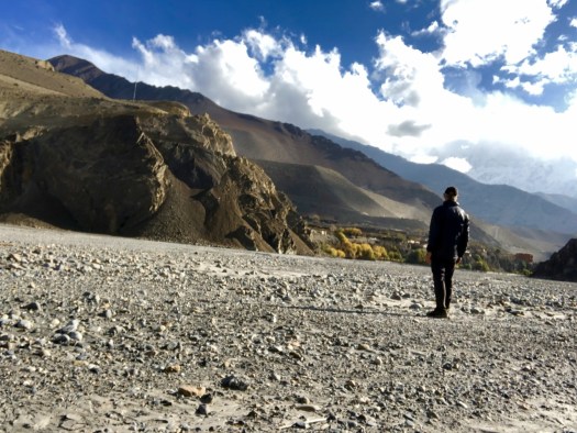 10am I started the easy walk up to Kagbeni (2840m). You can take the dusty road. Or walk aside barren Kali Gandaki, the river separating Annapurna from Dhaulagiri (8167m).