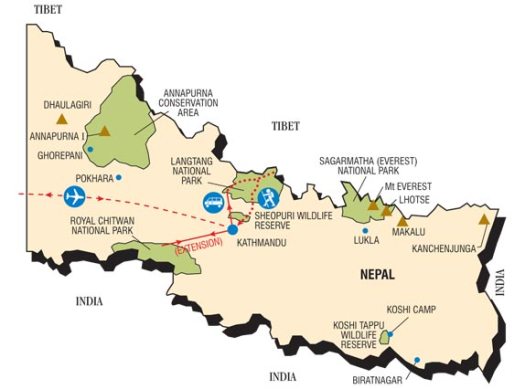 Drive to Syabrubesi, trekking Langtang first (top of the map). Then backtracking to the Gosainkund & Helambu trek, walking most of the way back to Kathmandu.