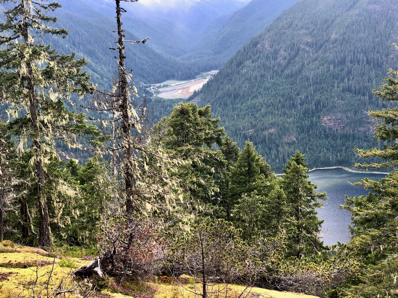 Not many views early on. When you do, it’s of the the Myra Falls Mine (opened 1959)