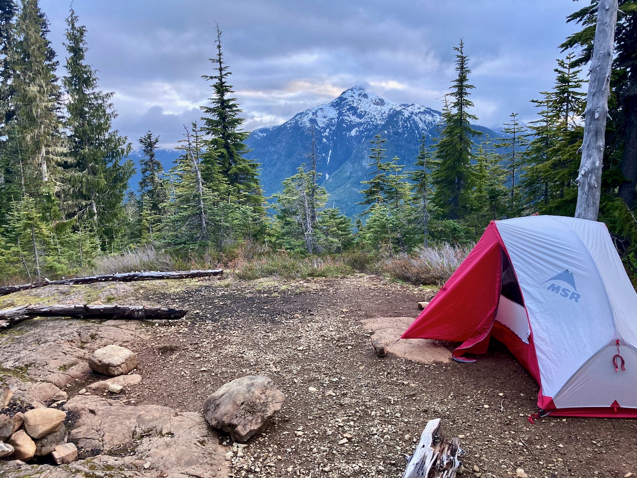 Beautiful morning. Ideal campsite in the Marine Park next to Buttle Lake campground.