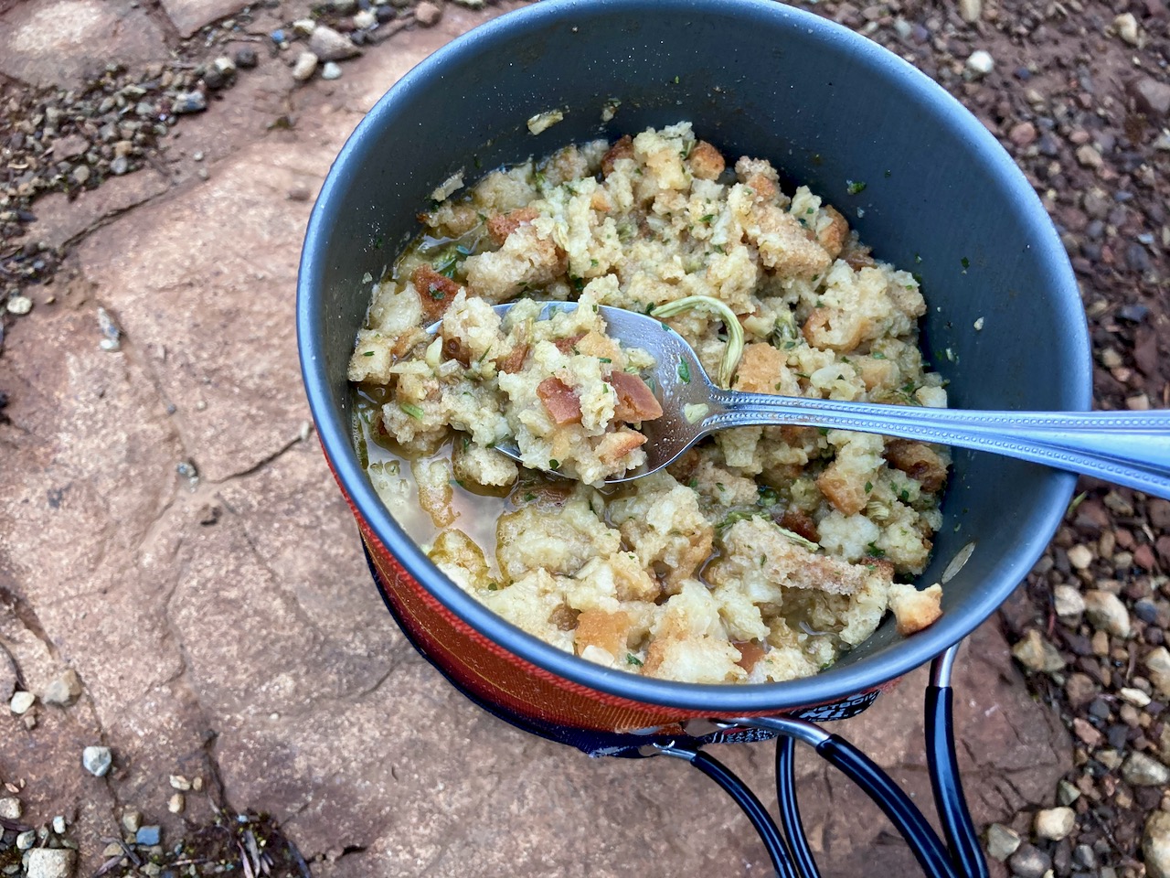 Normally my dinners are based around instant mashed potatoes. But for this trip I went all in for instant stuffing.