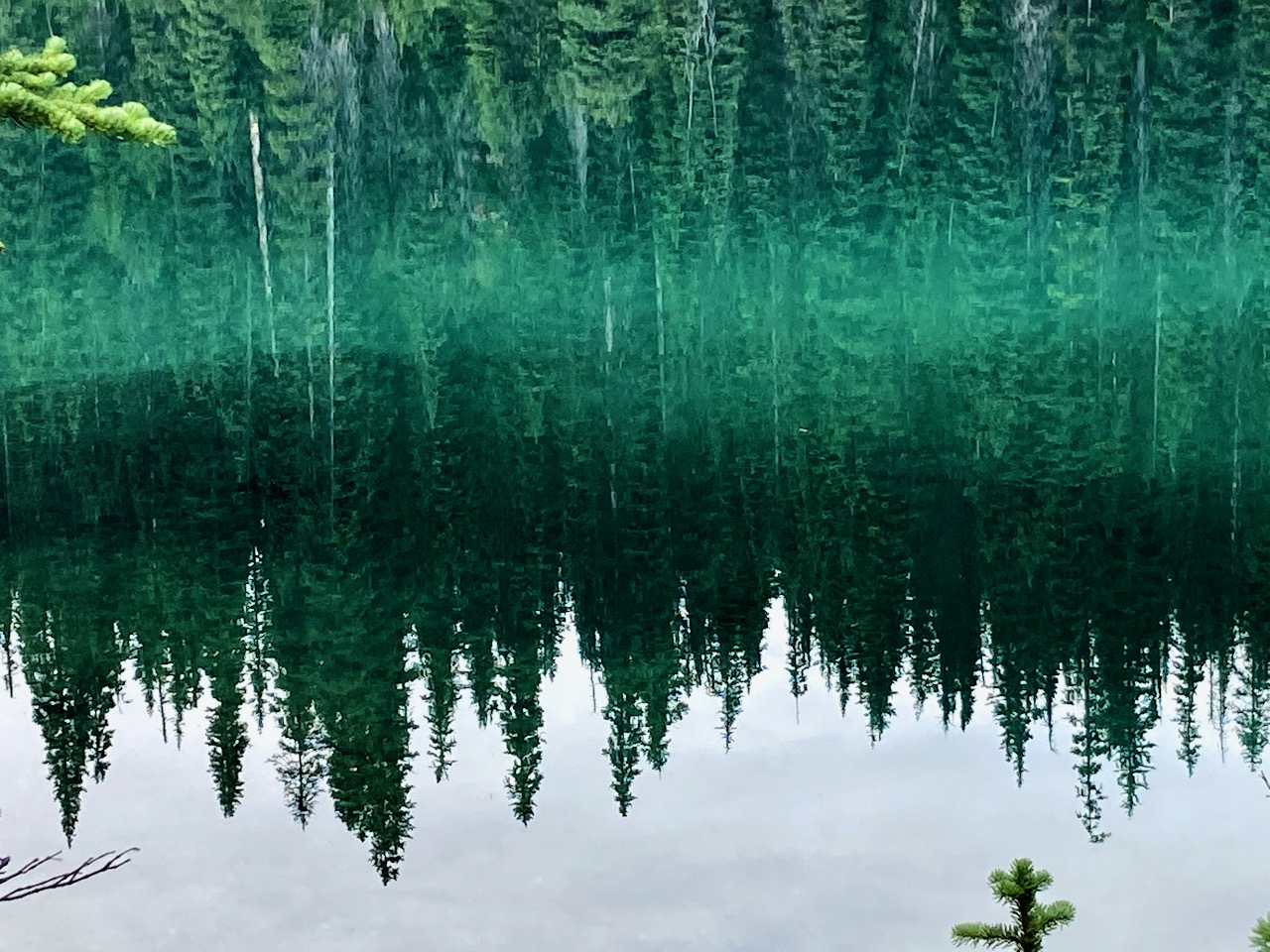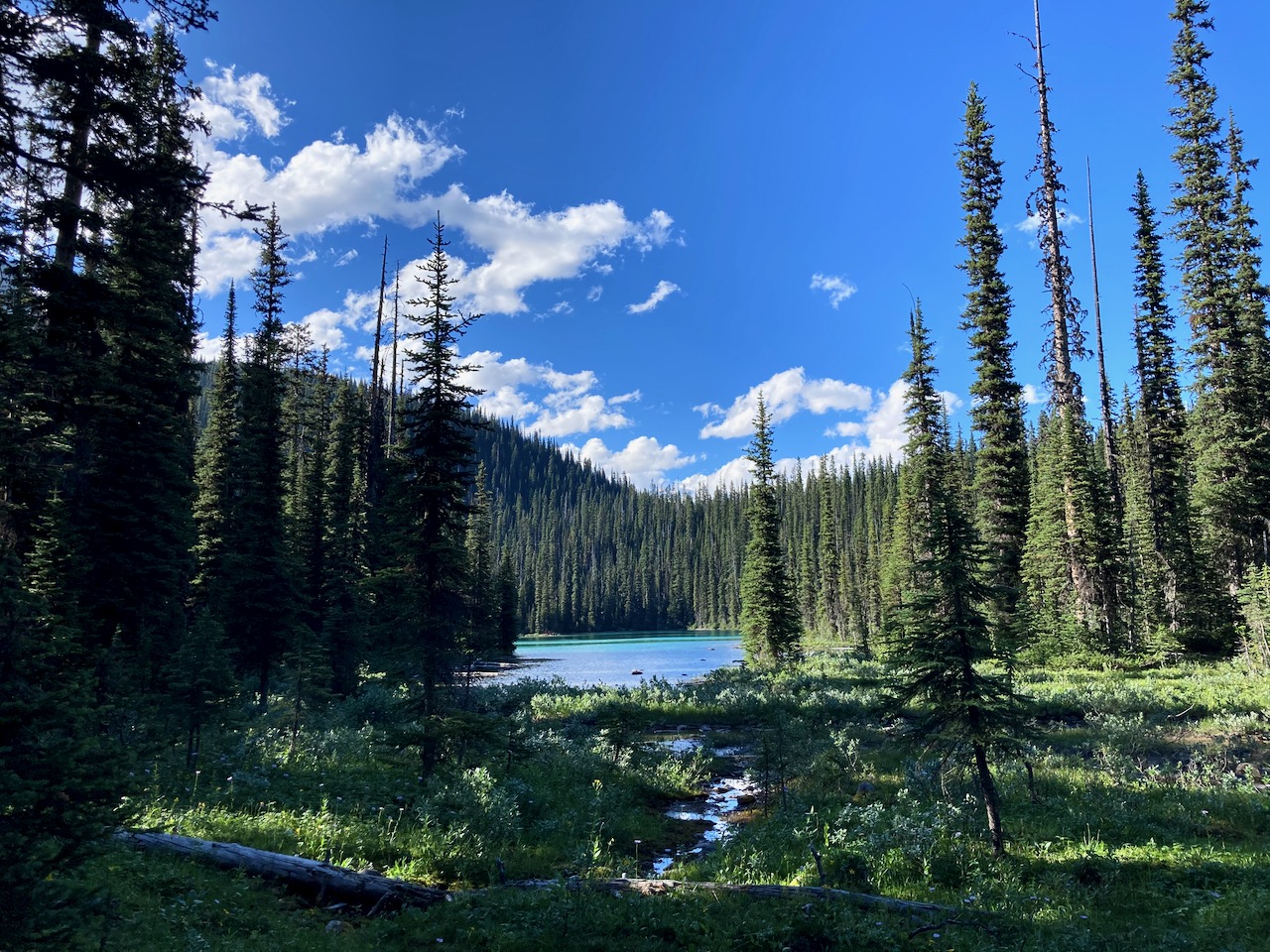 Warren and I decided to extend the walk and circumambulate Emerald lake. (Actually, we had originally planned to return via Burgess Pass trail — but it seemed to be unsigned and closed in 2020.). So we walked around Emerald lake and back the way we came.