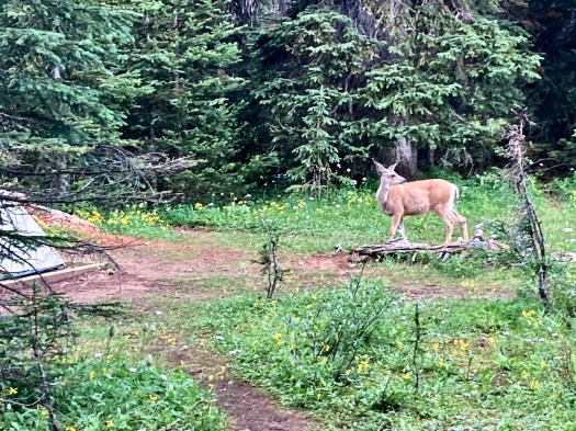 Next morning we had one deer hang around the tents. I assume he was salt deprived, looking for urine.