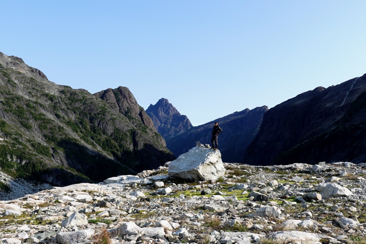 At the top I spoke briefly with a couple attempting the long, challenging Golden Hinde Traverse. (47km 5-8 days)