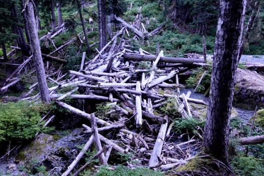 Worst was this dry log jam. I bushwhacked around, finding a bypass trail on my return.