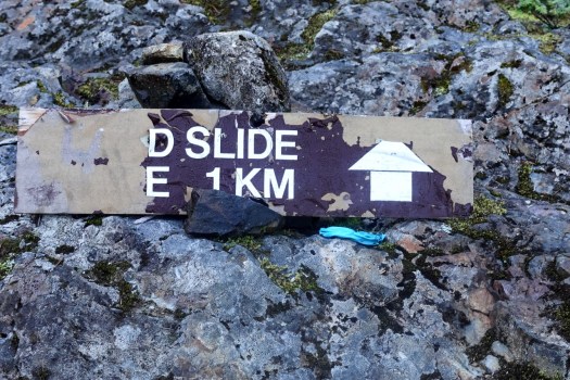 Everyone sees the damaged sign pointing to Landslide Lake.