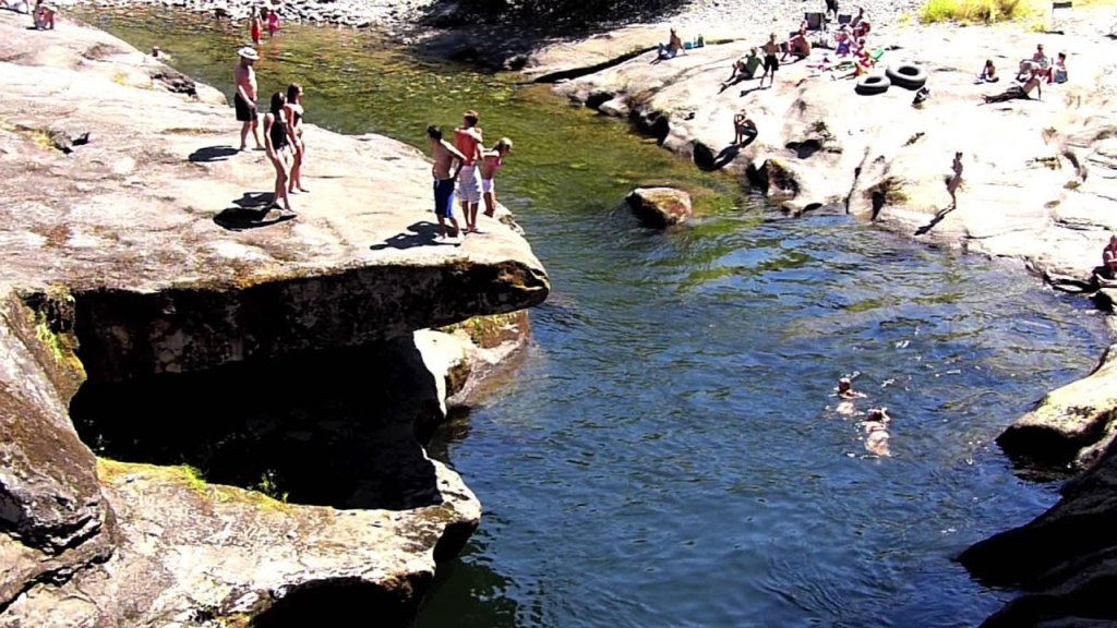 In good weather, the bridge near the parking areas is a popular swimming spot.