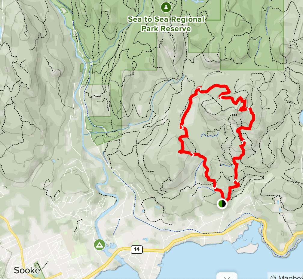 It’s just off the Galloping Goose Regional Trail, a 55-kilometre (34 mi) non-motorized path to Victoria. Ideal for me as I cycled to the trailhead.